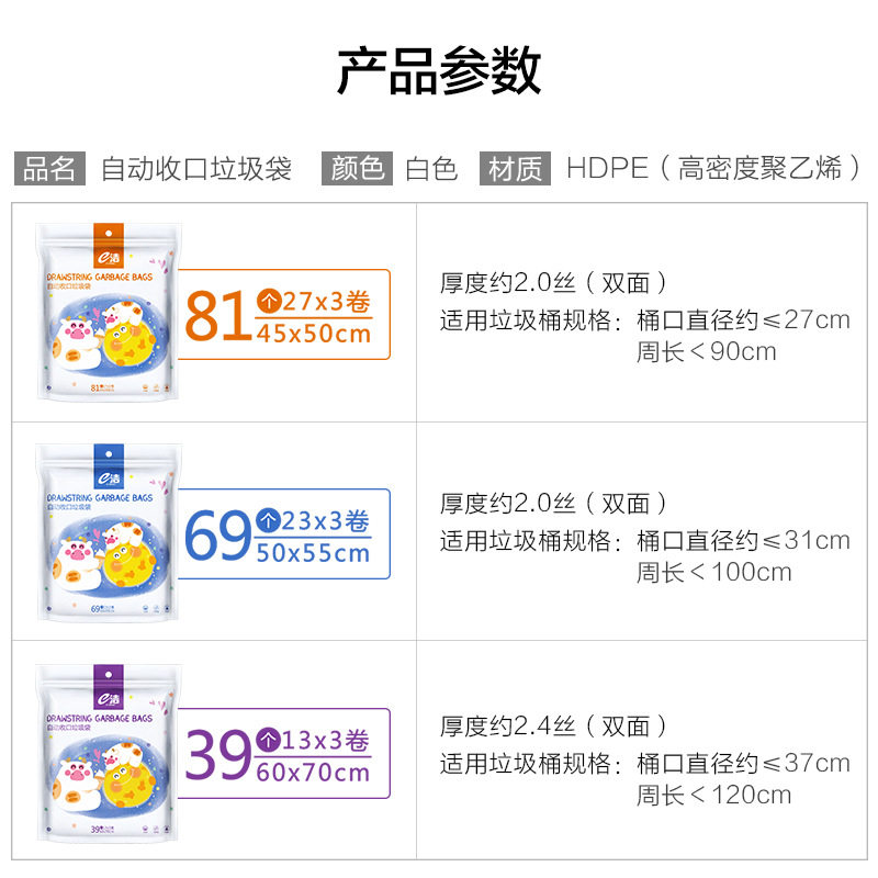 Creative e clean garbage bag pull type household 20 liters kitchen living room bathroom 12L thickened white drawstring