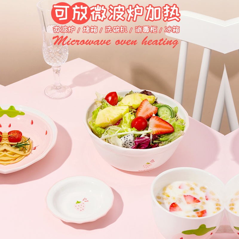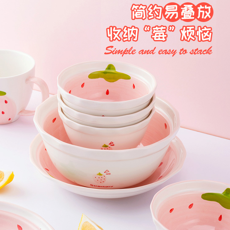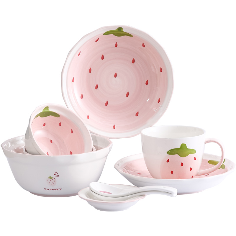 5 inches - strawberry bowl 7 25 inches - strawberry soup bowl 8 inches - strawberry plate strawberry water cup strawberry flavor plate * 2 strawberry spoon * 2