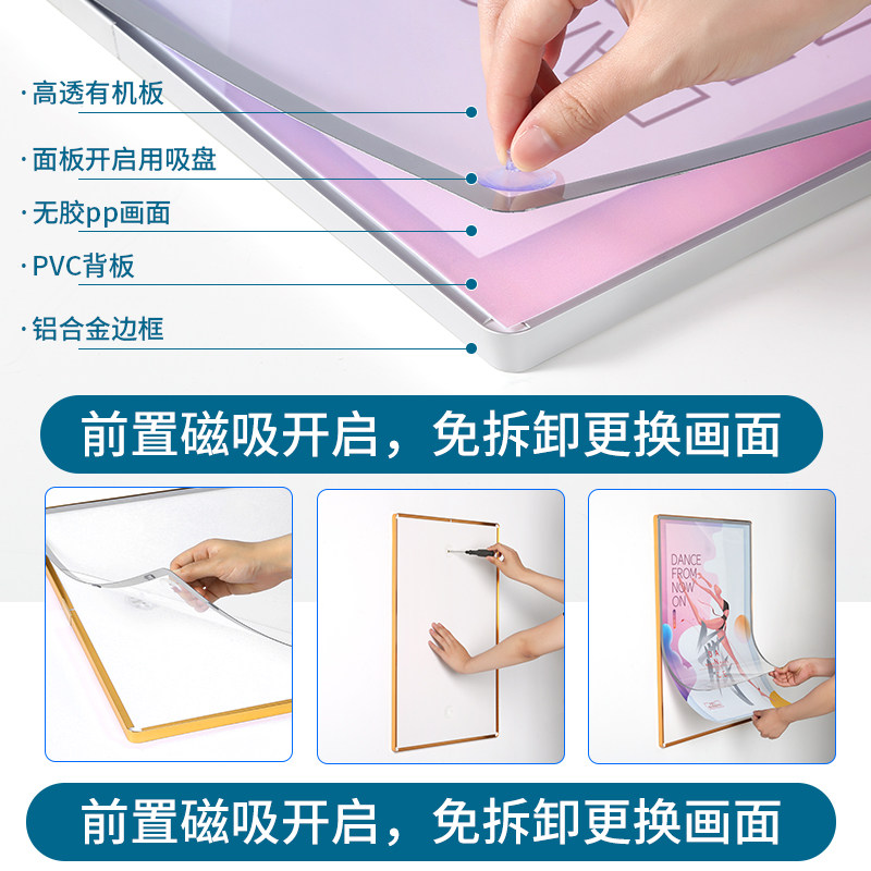 Elevator advertising frame magnetic absorption poster frame aluminum alloy frame frame a4 acrylic propaganda frame a3 photo frame hangs wall