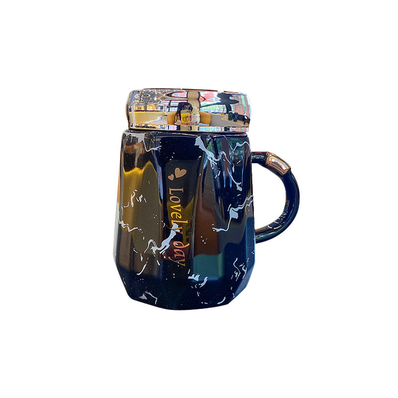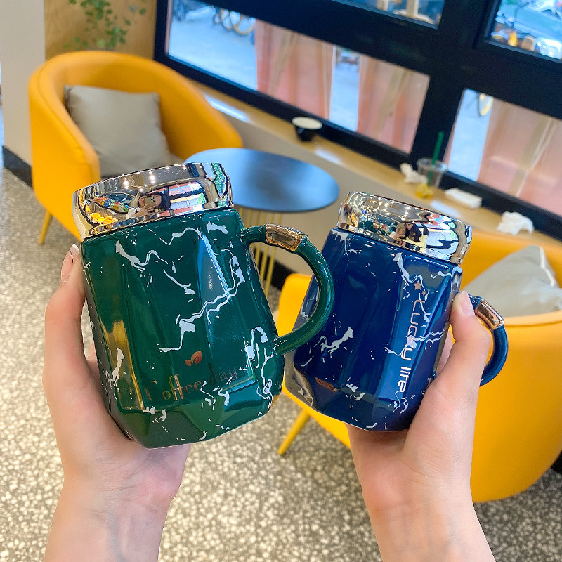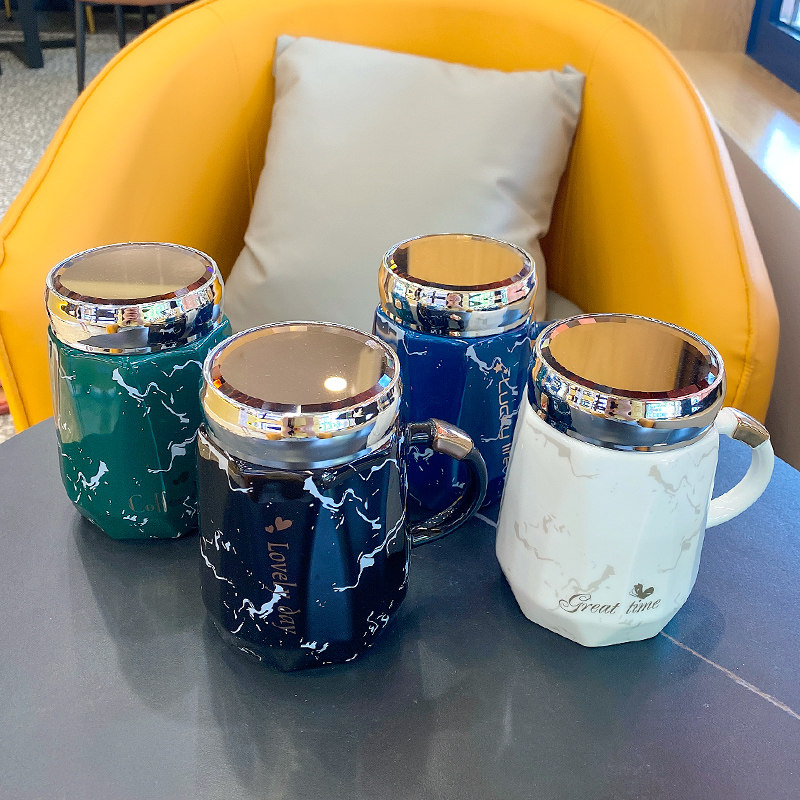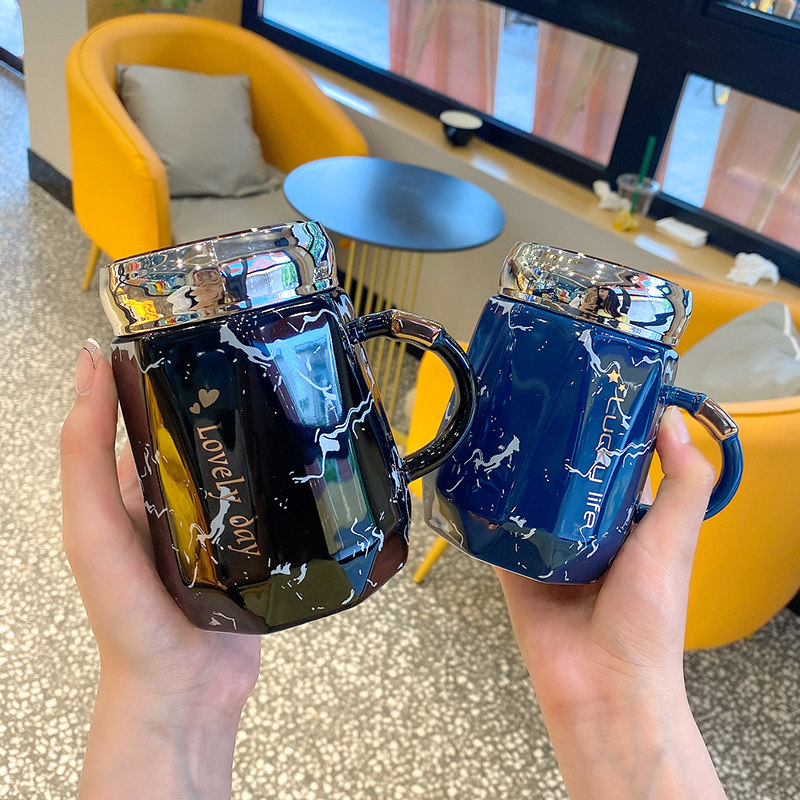 High-end creative mirror ceramic cup office simple with lid mug Nordic style ins high-value couple cup