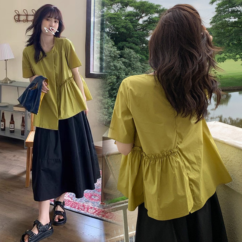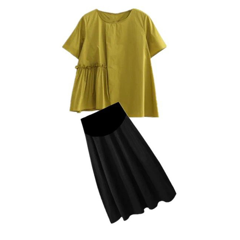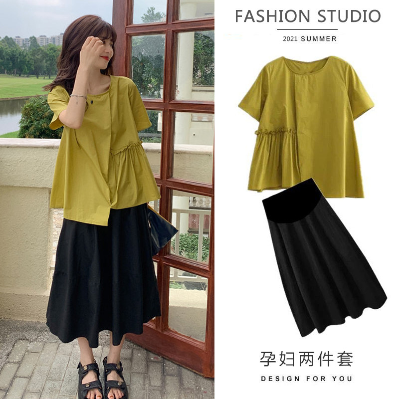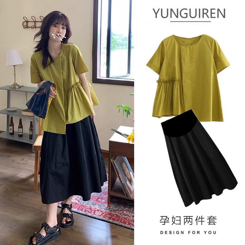 Maternity dress summer suit Net red summer short-sleeved solid color top half skirt Korean version of maternity dress summer