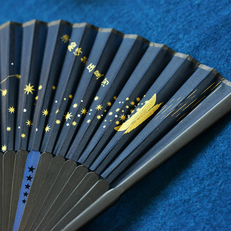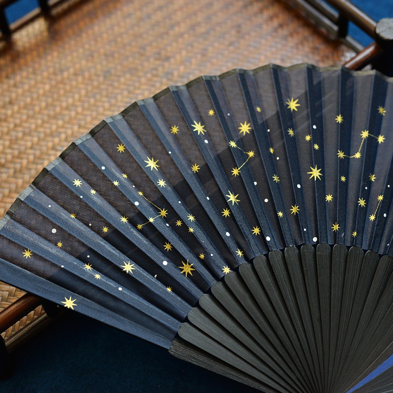 Chinese Wind Starry Sky Folding Fan Retro Japanese Hanfu Cheongsam Matching Props Folding Fan Girls Gifts for Girlfriends