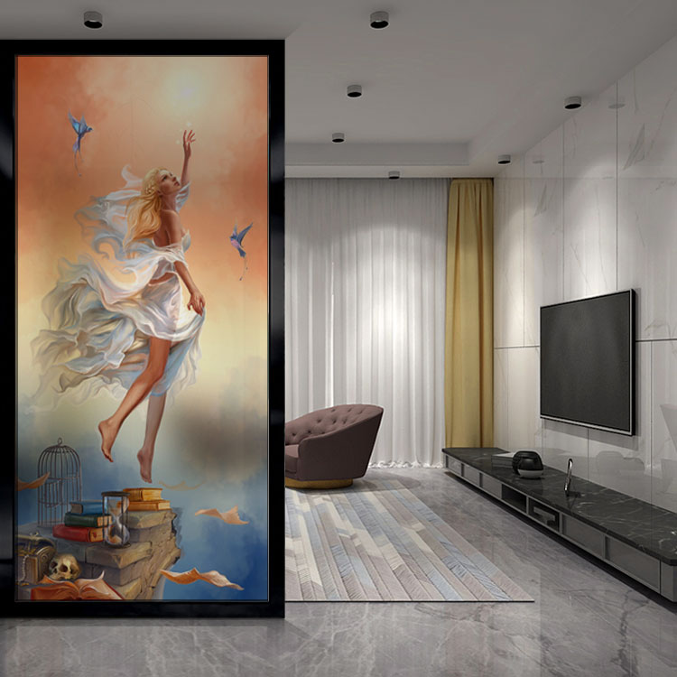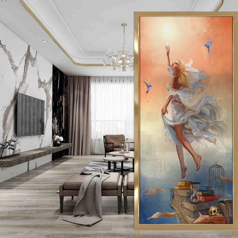 Art glass custom girl screen aisle partition living room double-sided frosted translucent painted tempered high-end production