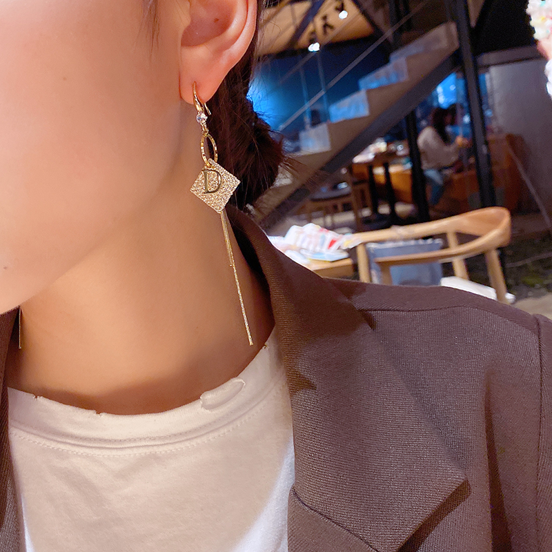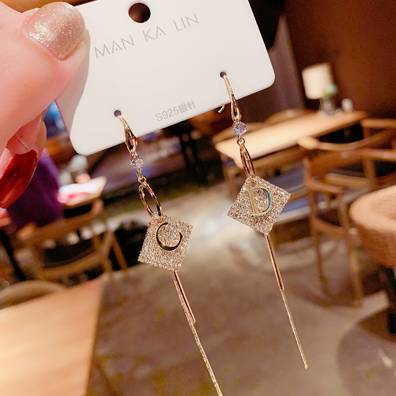 South Korea 2022 new tide square alphabet Sue pure silver earrings female net red temperament with long thin ear decorations