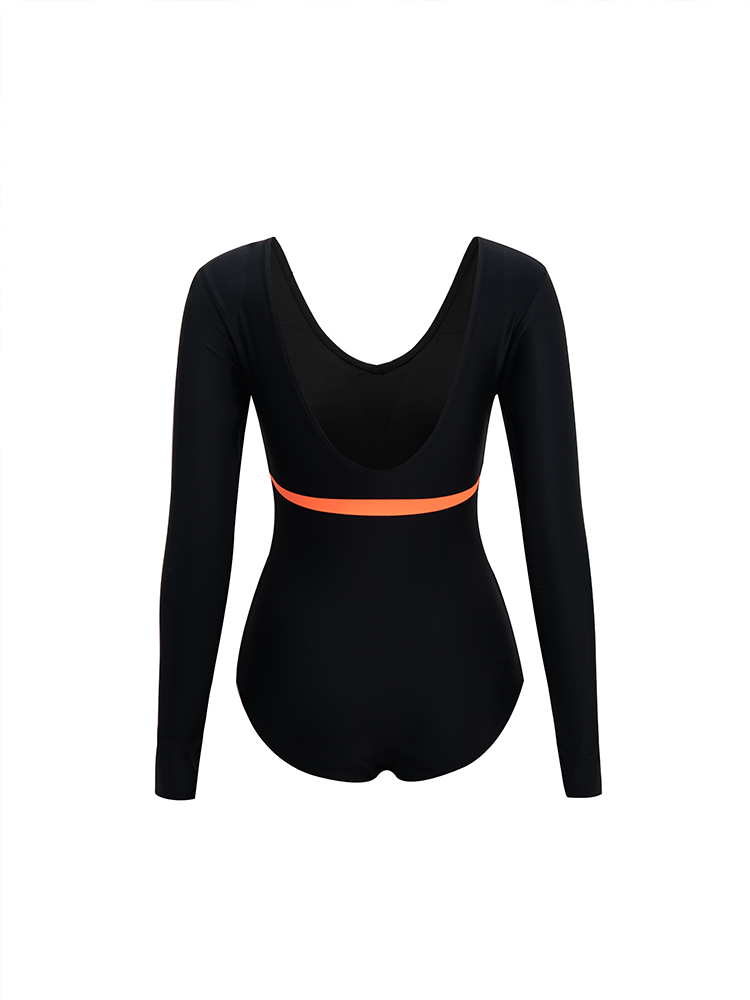 BAGEL swimsuit long-sleeved surf sports models black slimming ins wind bubble hot spring with finger sleeves digging back one-piece swimsuit