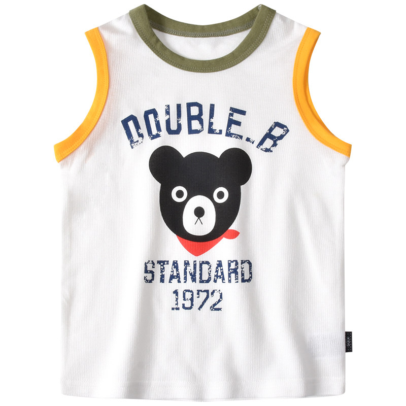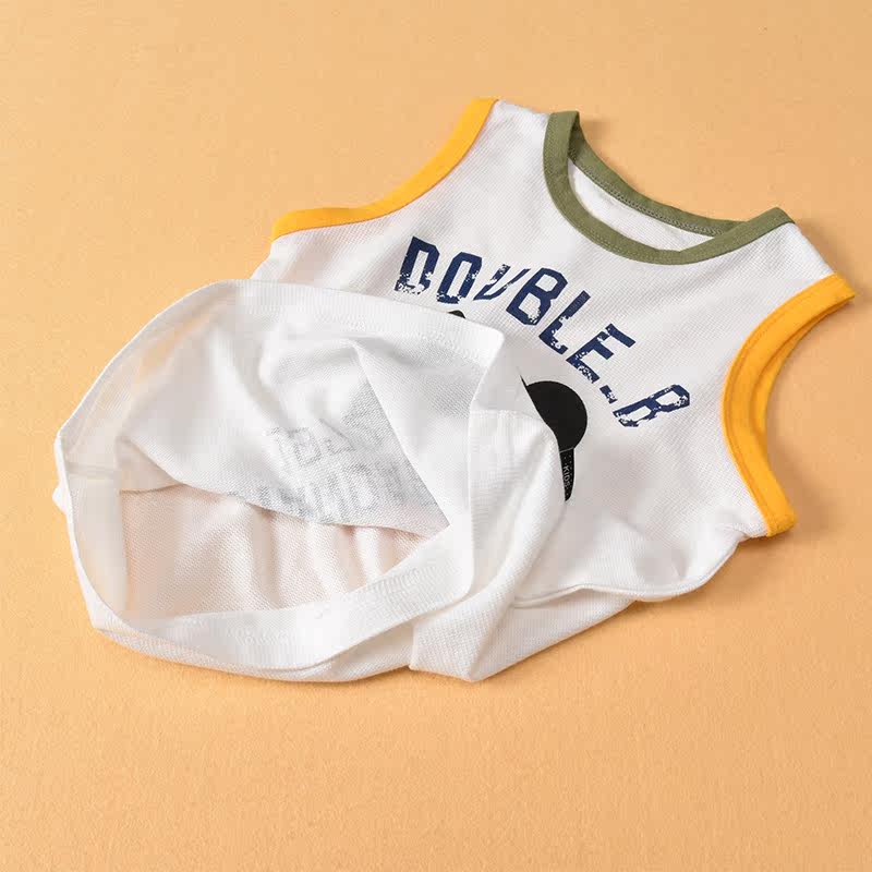 Summer children's pure cotton net vest male and female waffger sleeveless collar breathable thin 90 - 130 yards day
