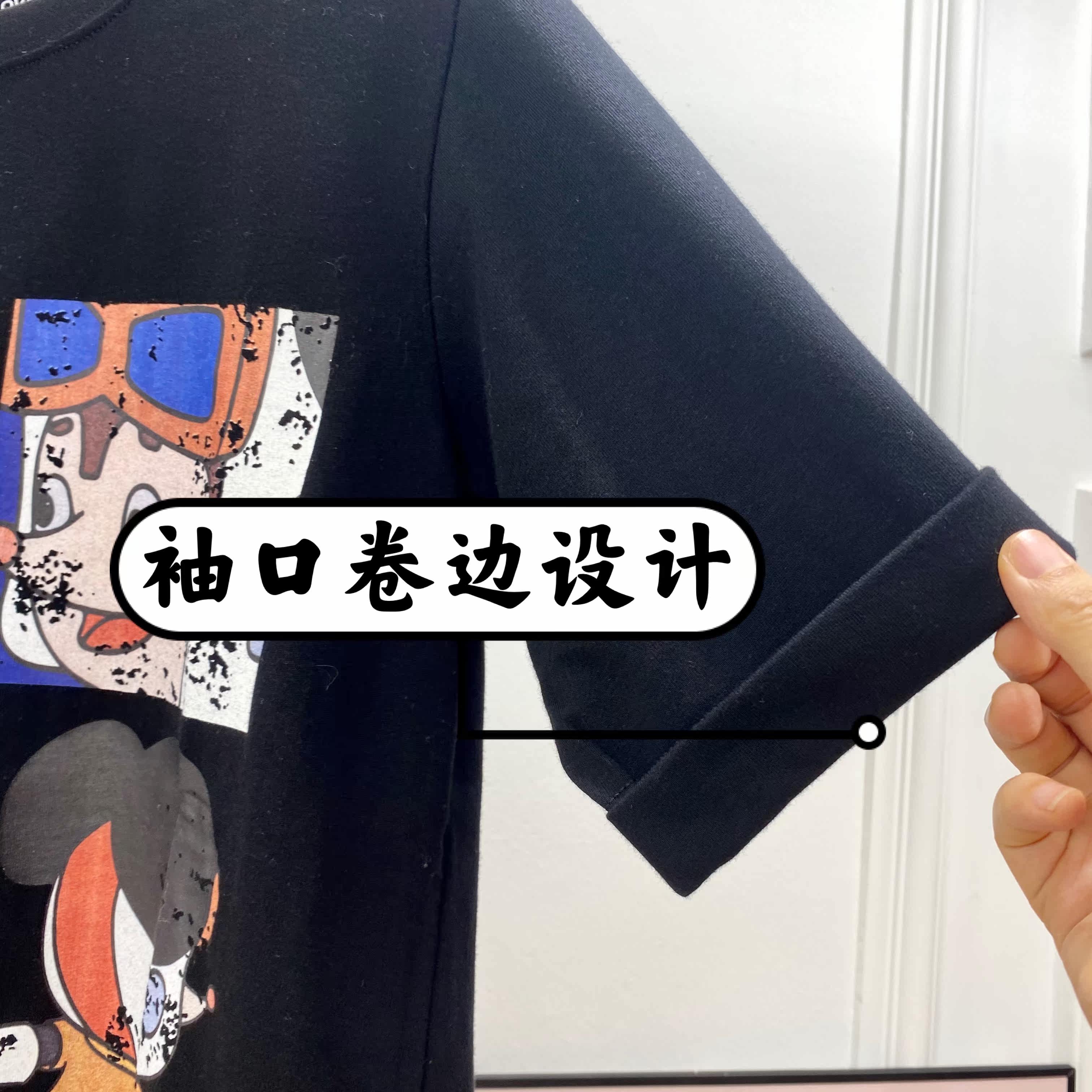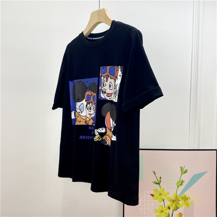 China tide tail goods vintage old Shuke and Beta casual wild youth cartoon print loose short-sleeved top