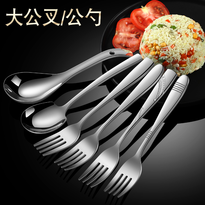 Large fork Stainless Steel Service Fork Public Fork Service Spoon Large Spoon Self-service Dining Fork Barbecue Fork Thickness
