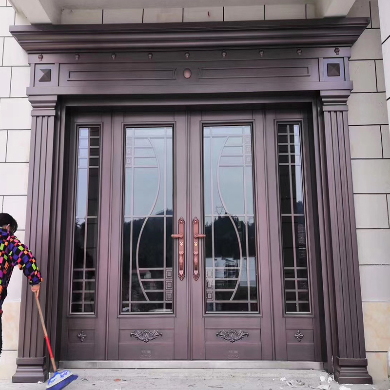 Villa door Double door Rural self-built house open door Copper door Rural zinc alloy glass security door Household