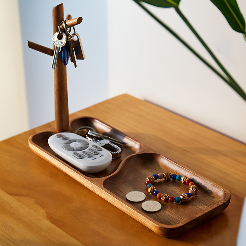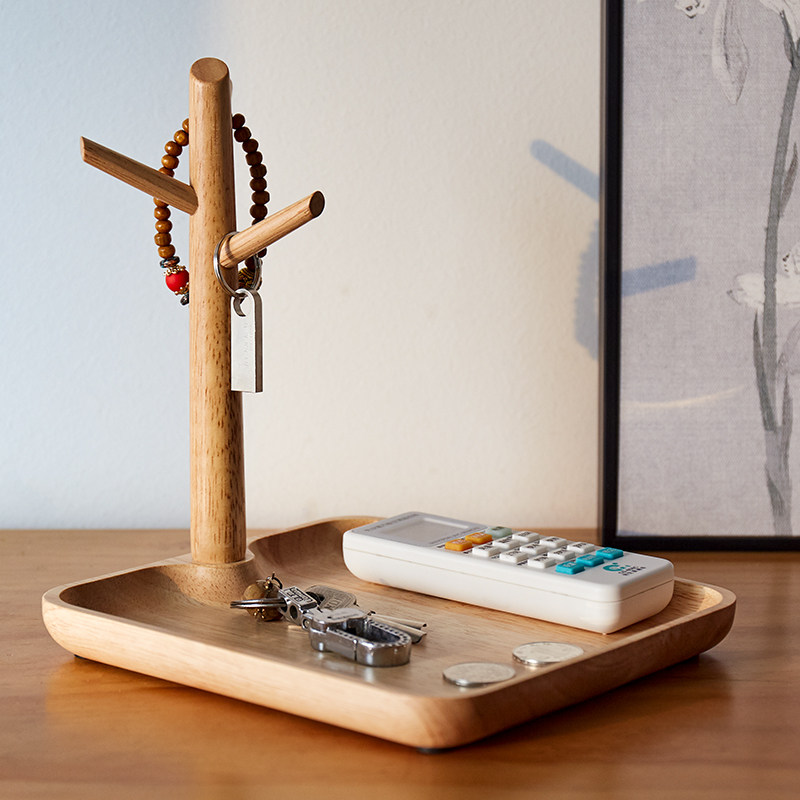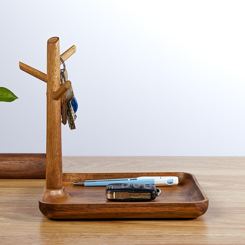 Solid wood entrance entrance key storage box Shoe cabinet Creative decoration Living room desktop shelf hook Chinese style