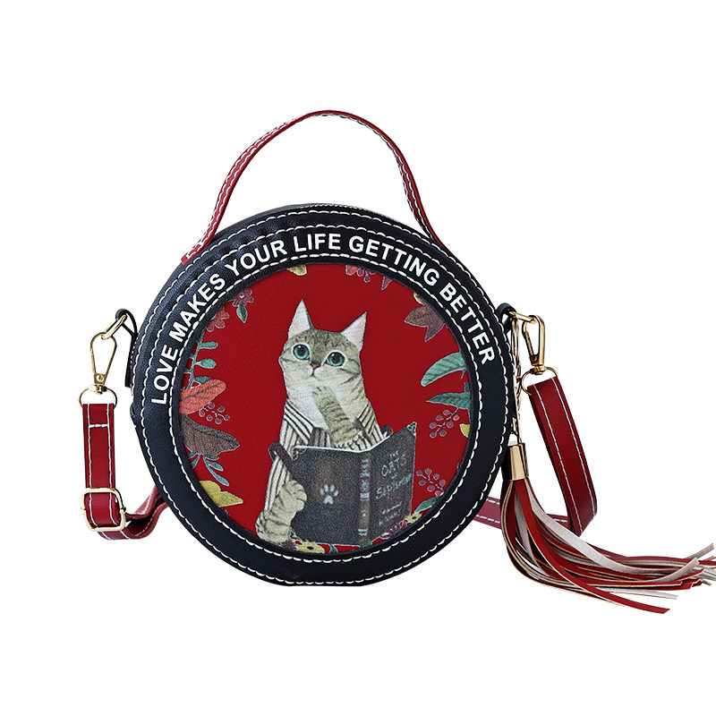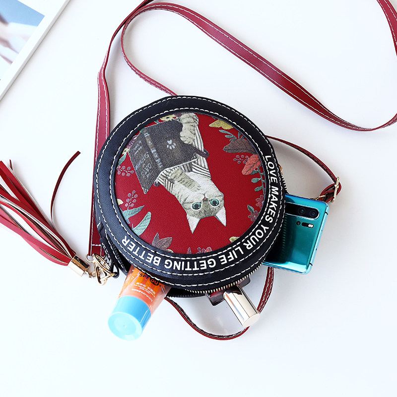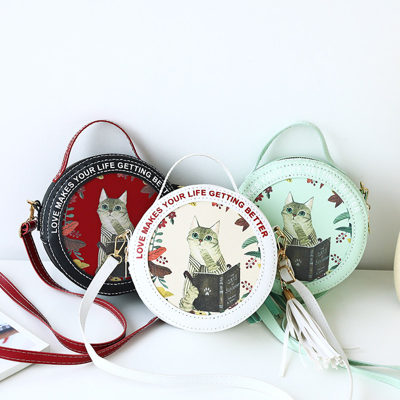 Black reading cat round bag (diy material bag) white reading cat round bag (diy material bag) green reading cat round bag (diy material bag) gift bag black reading cat round bag (diy material bag) gift bag