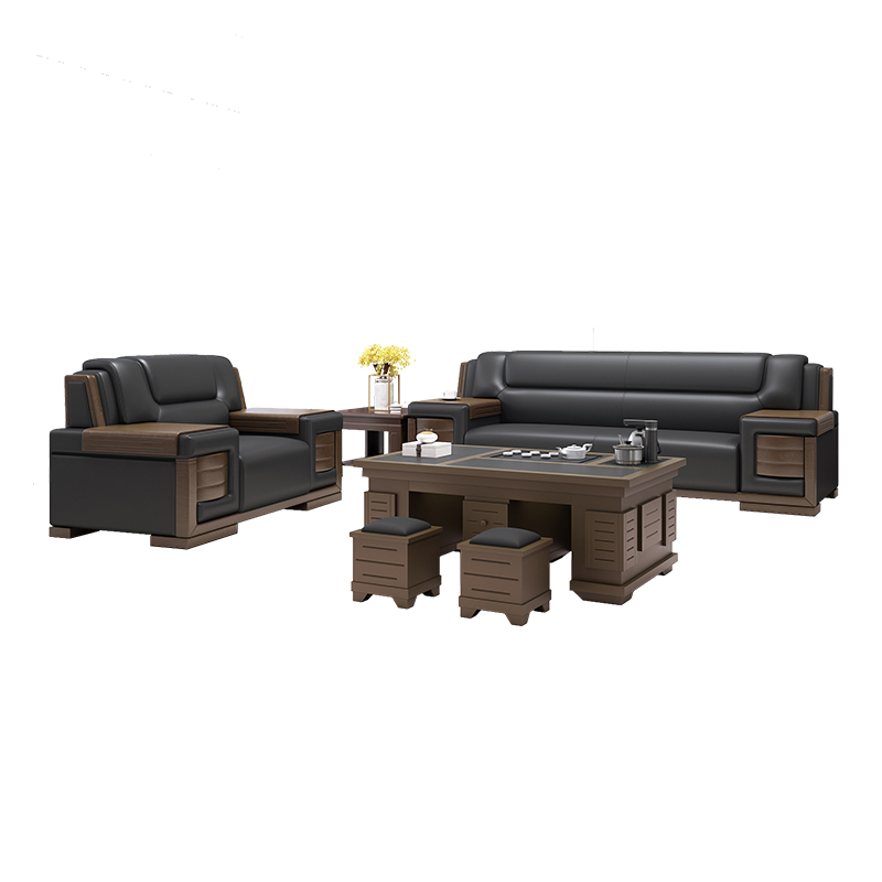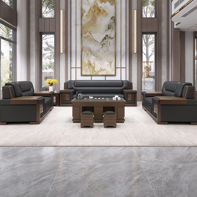 Office sofa triple business conference to discuss conference guest reception room modern Chinese leather tea combination package
