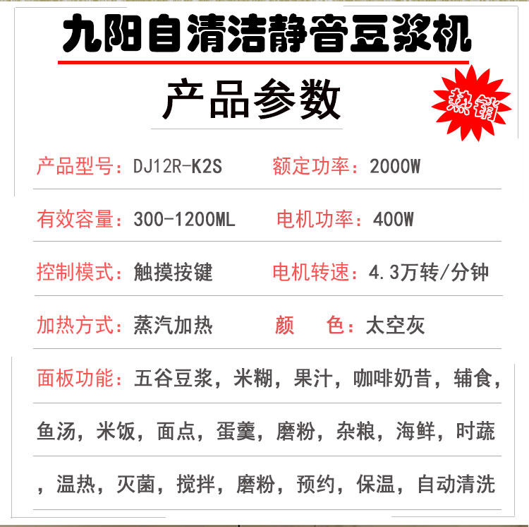 Joyoung DJ12R-K2S soymilk machine wash-free broken wall multi-function cooking automatic cleaning All non-staple food baby