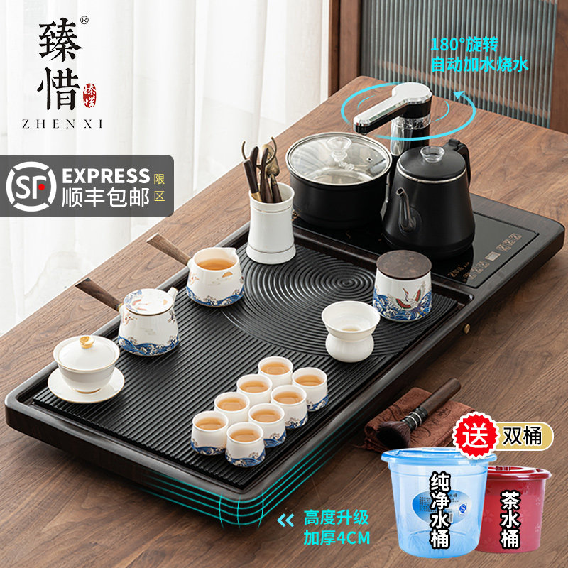 Zhenxi modern light luxury black pottery Kung Fu tea set Household living room automatic one-piece high-end Wu Jinshi tea tray