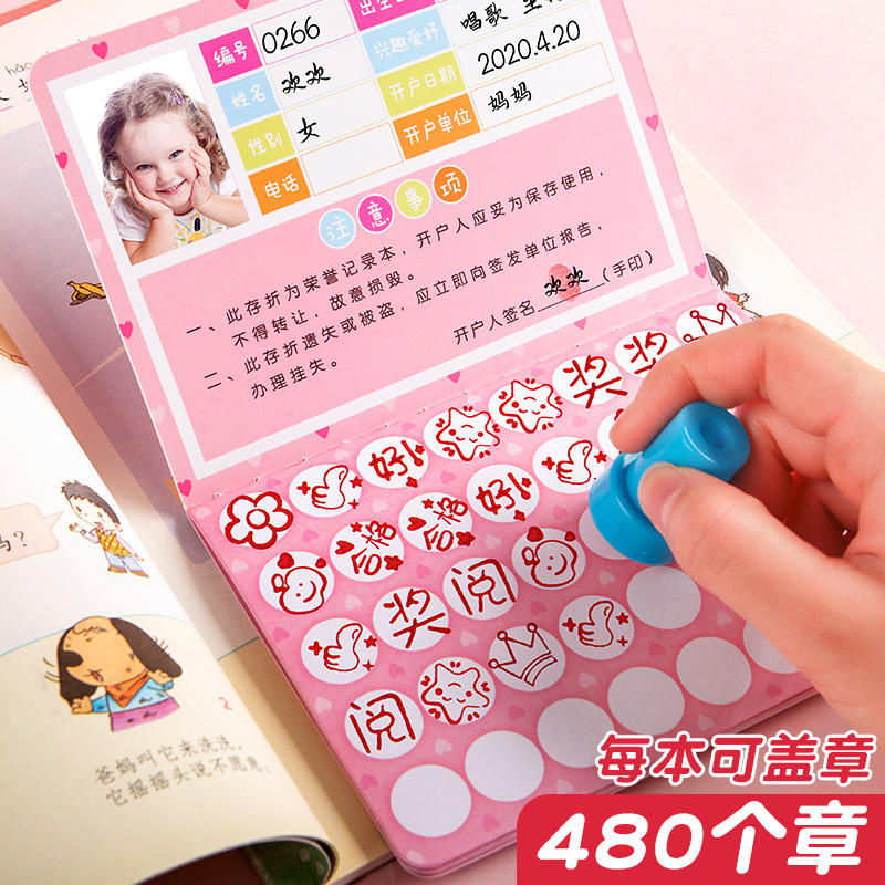 Wish Passbook Elementary School Students Accumulate Card Stamp Collection Stamp Collection This Children's Kindergarten Stickers Kids Reward Learning Record Card Set Zamben Set Stars Small Red Flowers Home Read Passbook Home