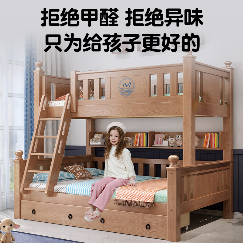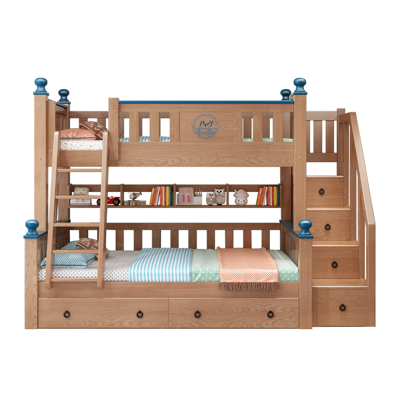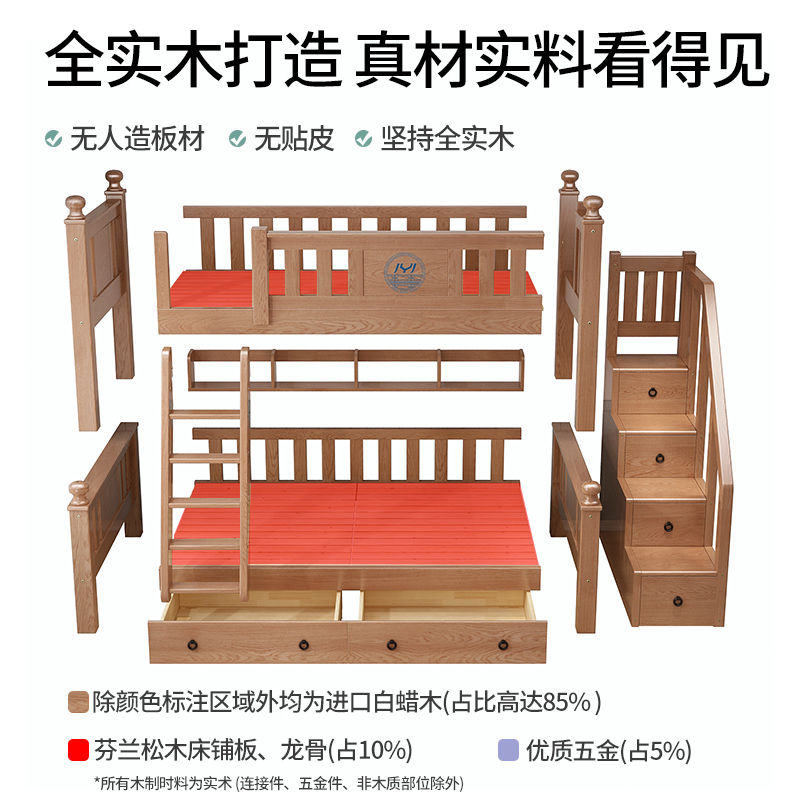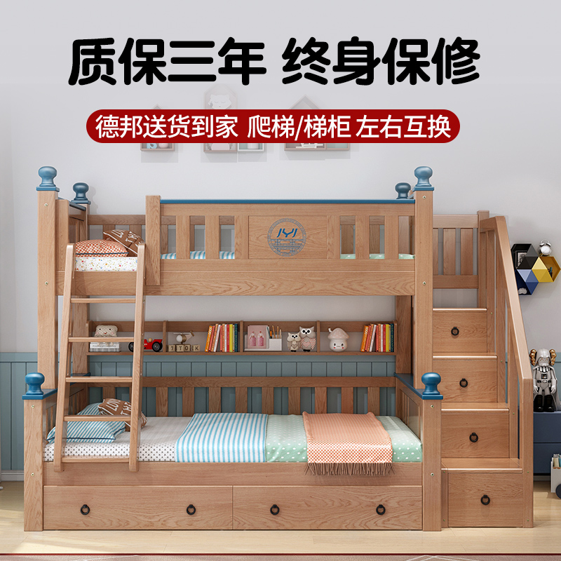 Solid wood upper bunk bed with double bed full solid wood primary and secondary bed Students with high and low bed Double beds Two floors up and down children beds