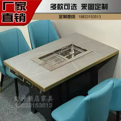 Smokeless one hot pot table buffet barbecue restaurant barbecue table and chair combo marble induction cooker table Commercial