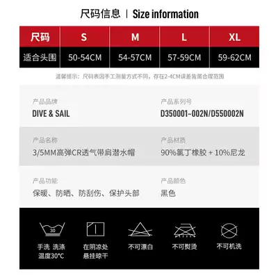 DIVESAIL diving cap 3mm headgear for men and women warm sunscreen winter swimming ear protection 5 snorkeling shoulder face Gini