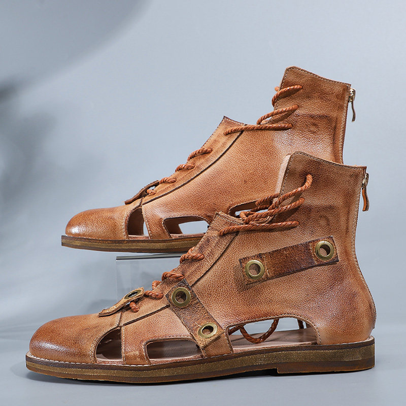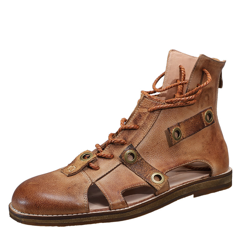 Original handmade head layer of cow leather high cylinder Baotou Rome hollowed-out Martin cool boots man genuine leather retro sandal women summer tide