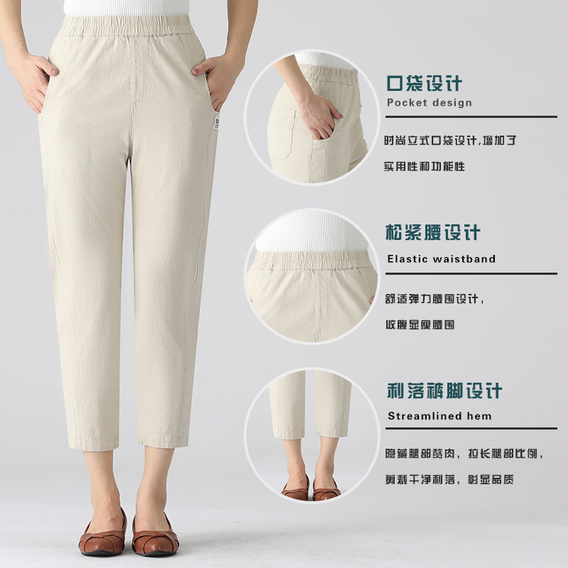 Mom Pants Summer Thin style Breathable 90% Casual Pants Woman Mid-Year Fashion Temperament Pants Mid-Aged Women Pants