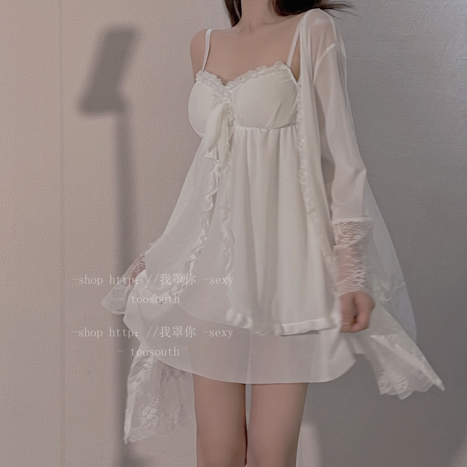 I cover you fairy fluttering white pure desire harness sexy pyjamas with chest pads Sleeping Skirt Day Ensemble Princess Wind Lace