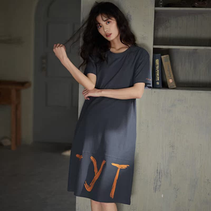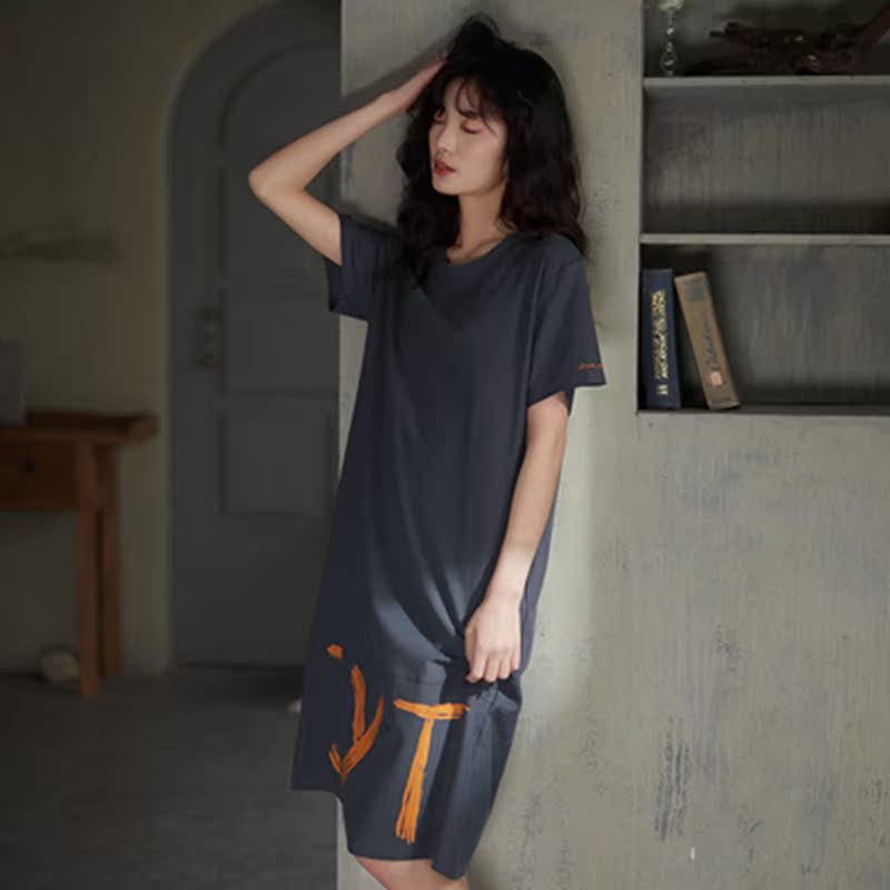 SADO YINER thin cotton pajamas women's summer mid-length loose large-size nightdress can be worn outside