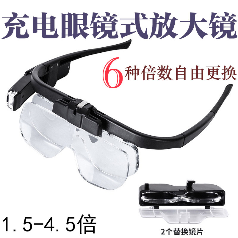 Zoom in glasses 4 5 times with LED light Old people reading reading and reading to play mobile phone embroidery engraving repair clock wearing style convenient high-definition high-fold glasses type magnifier grafting eyelashes-Taobao