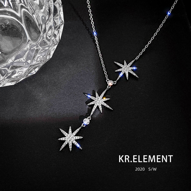Original Cebu Wind Golden Design Sense silver Sapphire Octamish Star Silver Triple Necklace