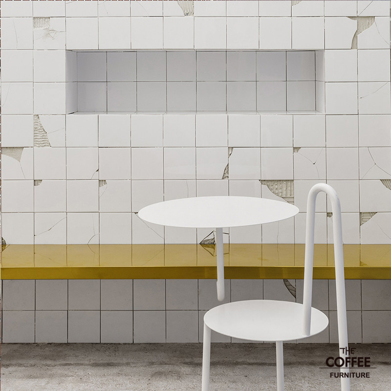 Net red cassette stainless steel wall round table L shaped table coffee room tea table milk tea shop iron art side a few tables
