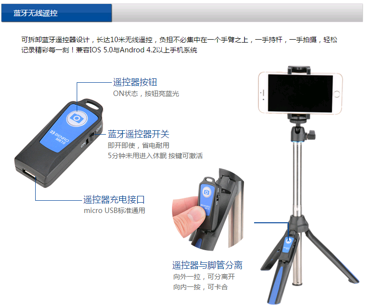 Bainuo MK10 mobile phone camera universal photo tripod bracket selfie artifact rod with bluetooth remote control