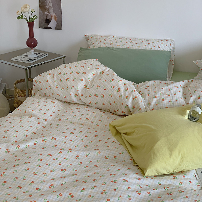 (Home Pose) Pure Girl Sensation Pure Cotton Bed Goods Small Crummy Flowers Three-Four Pieces Sleeve SS Front Sheet Quilt Cover