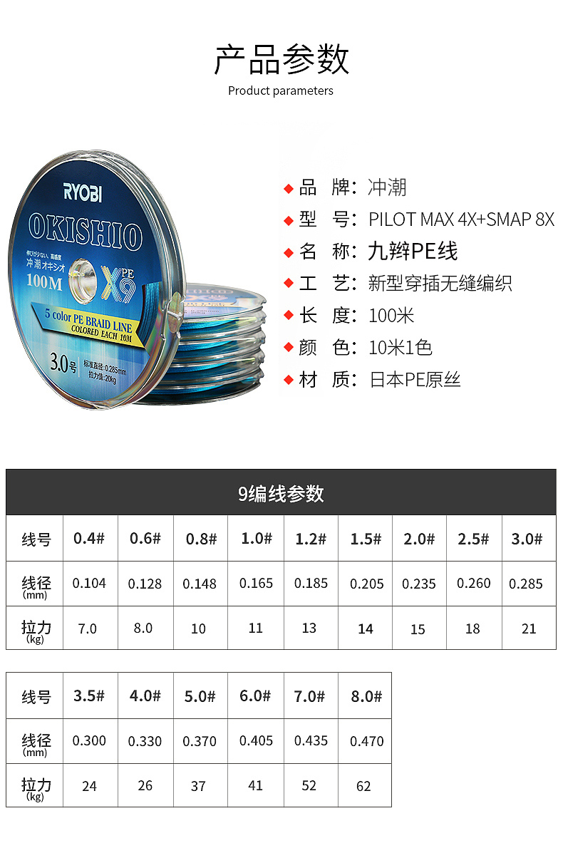 Japan's Ryobi 9 braided strong PE main line wear-resistant line boat fishing road sub-raft fishing long-distance anchor fishing line