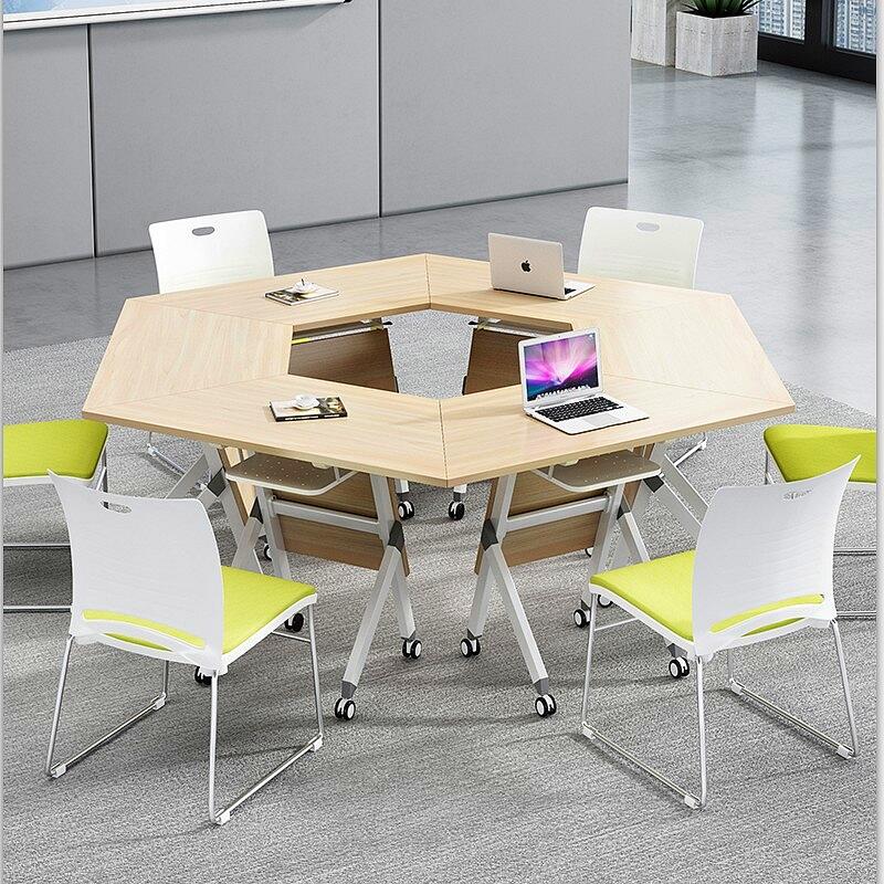 Fold Stack Training Table Splicing Hexagon Composition Removable Negotiate Conference Table Student Classroom Trapezoidal Movable Table And Chairs