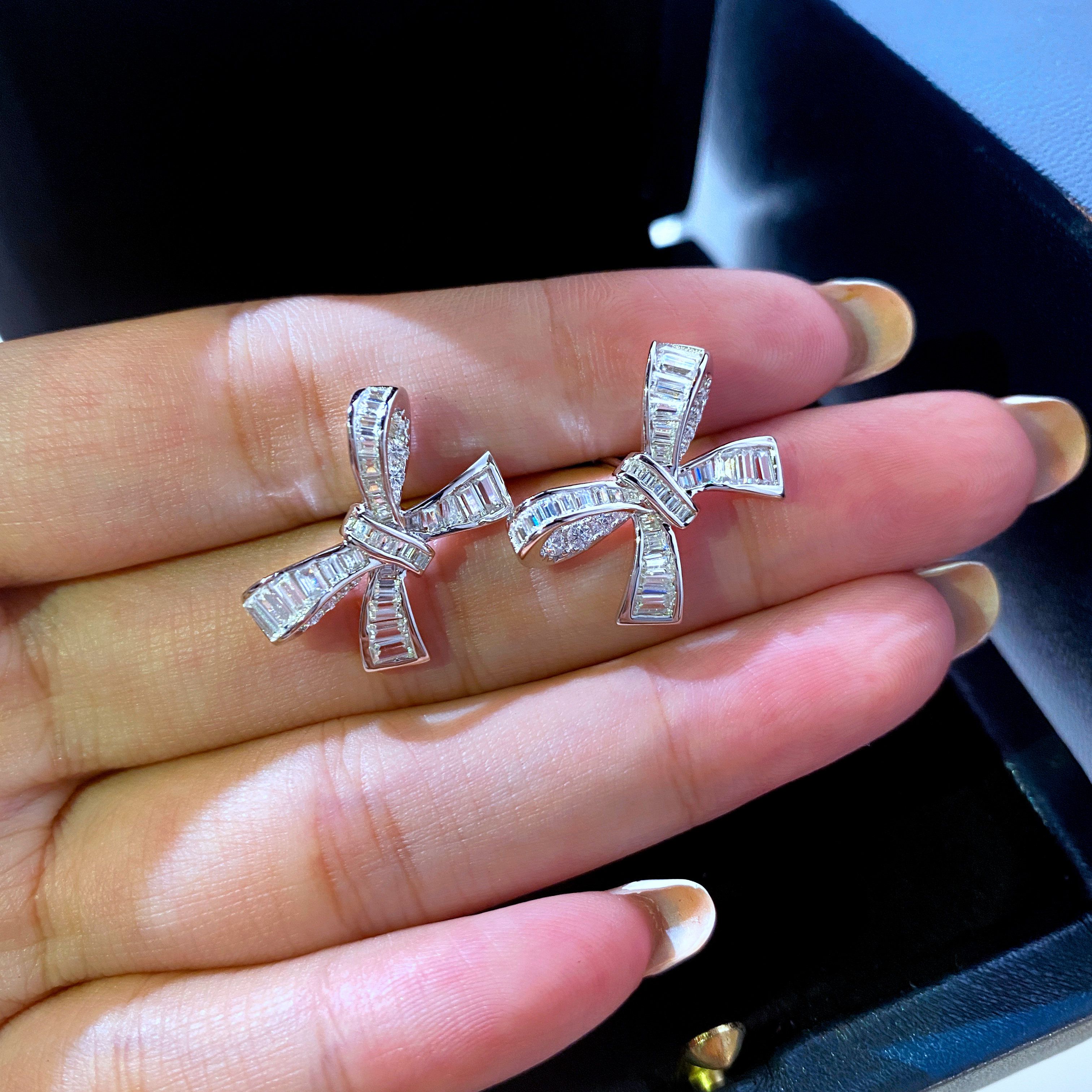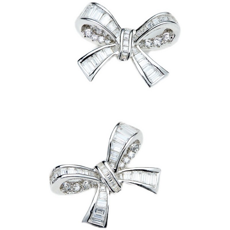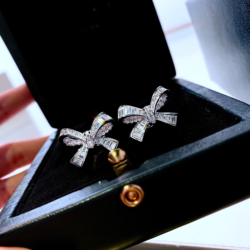 PT950 platinum tightly inlaid U.S. imported Moissanite ladder square bow earrings full of diamonds fashion earrings earrings ins