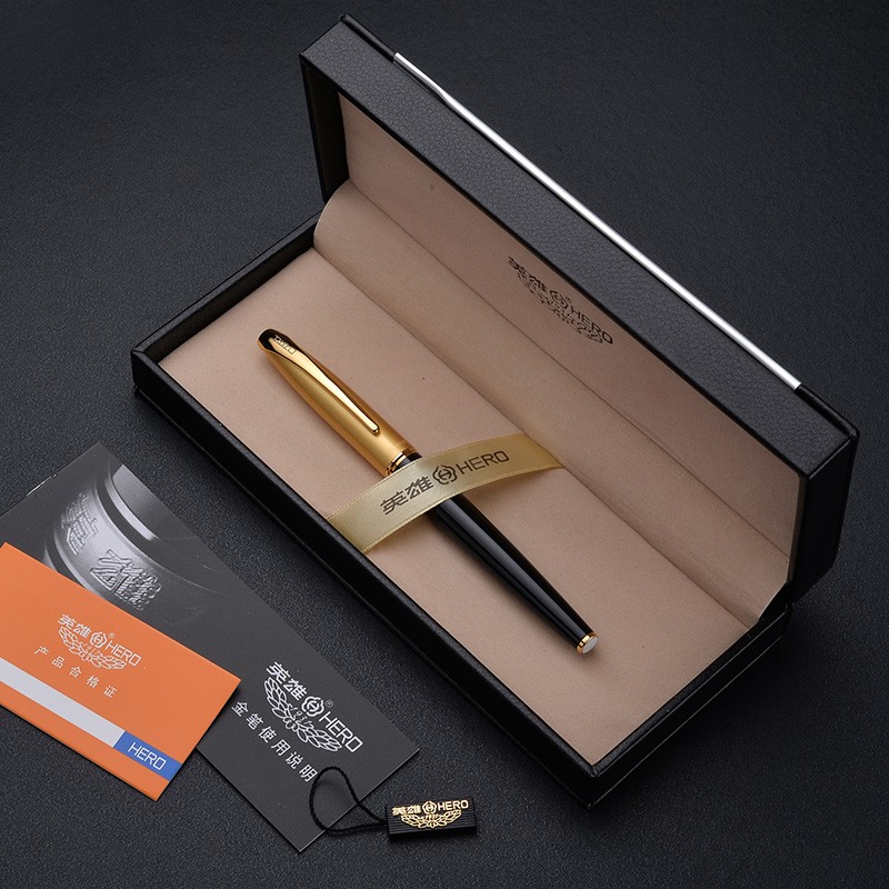 HERO hero pen 1000 gold pen 10K official metal business courtesy gift box dress classic old style student practice character sign upscale gift giving gift men and women customized lettering teacher leader
