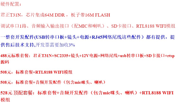 Junzheng T31 T31 development board Camera Network camera IPC wifi SD card Audio