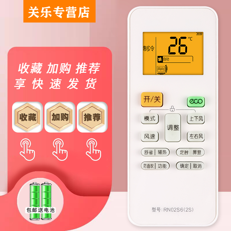 Suitable for perfect air conditioning remote control original model RN02S6 (2S) KFR-26 KFR-26 35GW JDN8B3E JDN8B3E small whale shark WAHIN Waring RN02