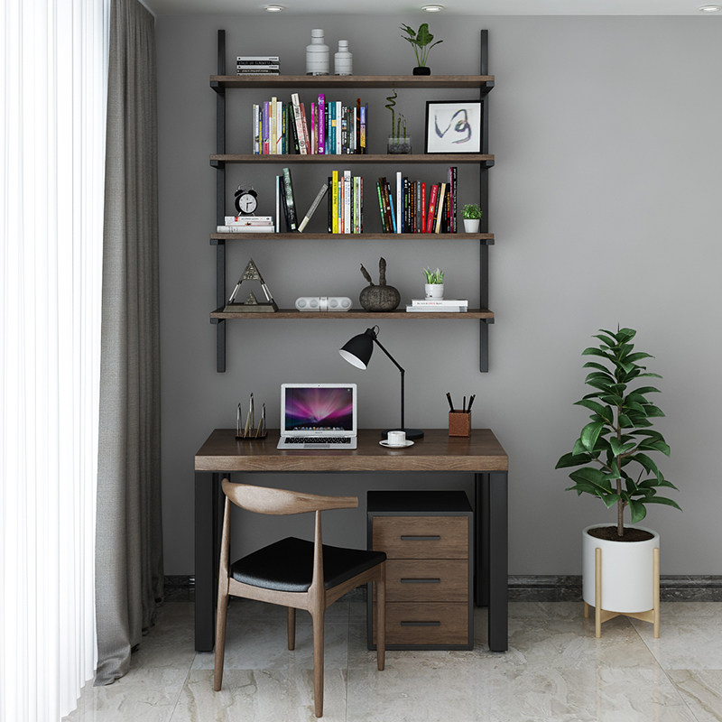 Solid Wood Desk Bookshelf Combined Desktop Computer Desk Nordic Home Bedroom Desk Brief Modern Desk Sub