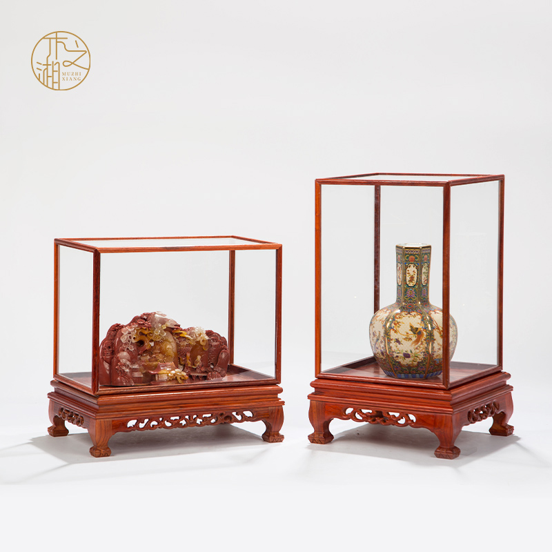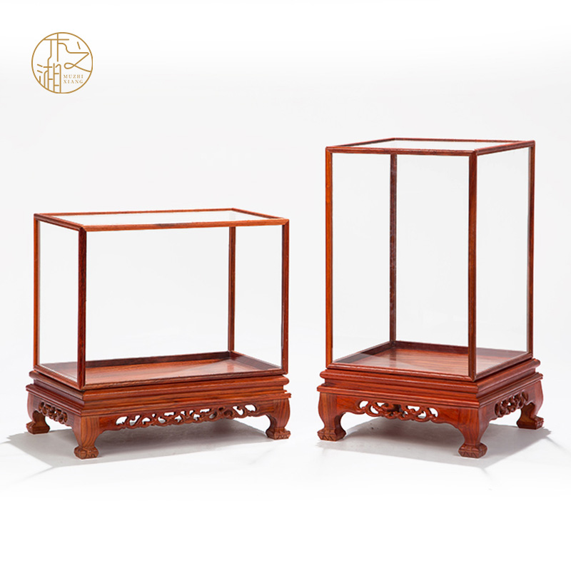 Mahogany pear tiger foot glass cover Solid wood vase Buddha statue handicraft decoration treasure cage display dust cover can be customized