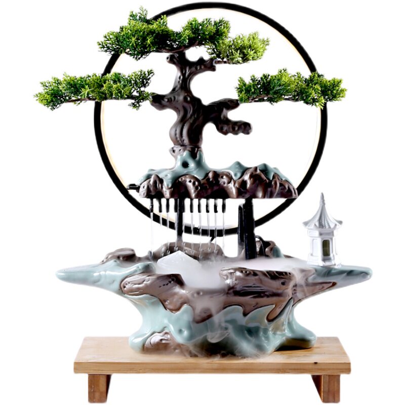 Cash Flowing Water Swing Piece Creative Fake Mountain Fountain Cycle Humidifiers Ceramic Home Office Desktop Opening Gift