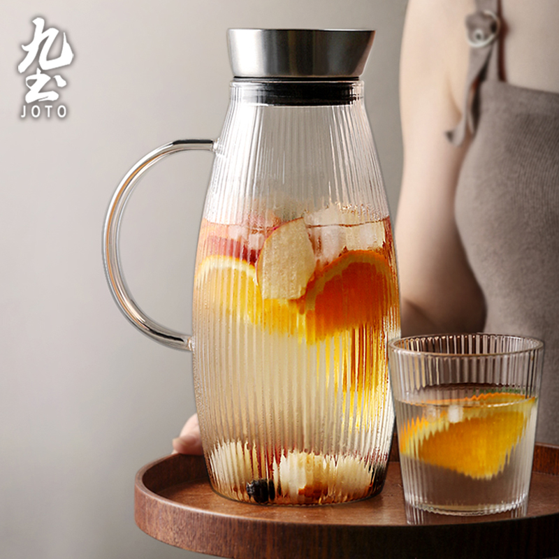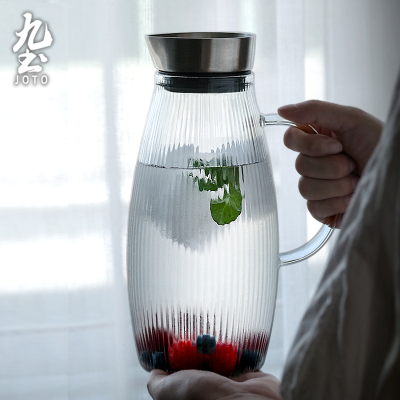 Nine Earth Summer Glass Cold Kettle Home Large Capacity Cold Kettle Juice Jug Day Style High Temperature Resistant Open Water Bubble Teapot