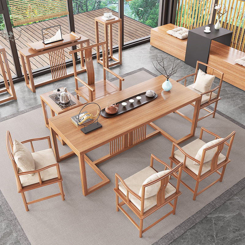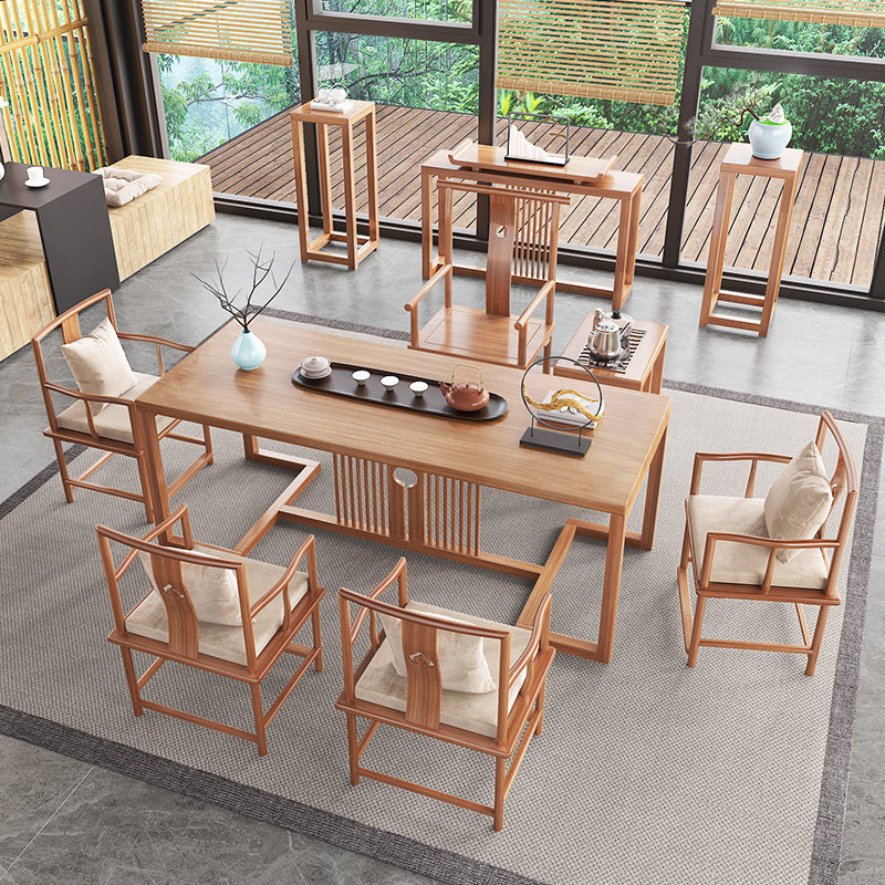 Solid Wood Tea Table Chair Combo Hu Peach Color New Chinese Style 1 m 8 Balcony Zen tea table Home Kung Fu Xiaoteatai A few