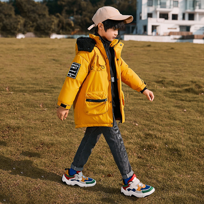 6 boys 7 children 8 mid-length version 9 down jacket 10 black yellow blue 11 big boy 12 thickened 13-year-old cotton-padded jacket winter - Taobao