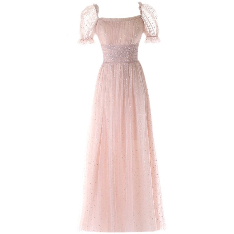 Pink bridesmaid dress autumn new fairy temperament simple romantic atmosphere wedding sister group activity evening dress date