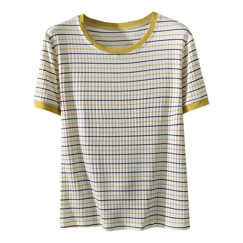 Design Sensation Small Crowdstriped Fresh Casual Short Sleeve T-Shirt Woman Summer Crash Color Loose 100 Hitch Short Sleeve Blouse Tide