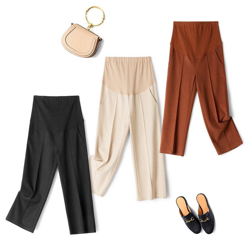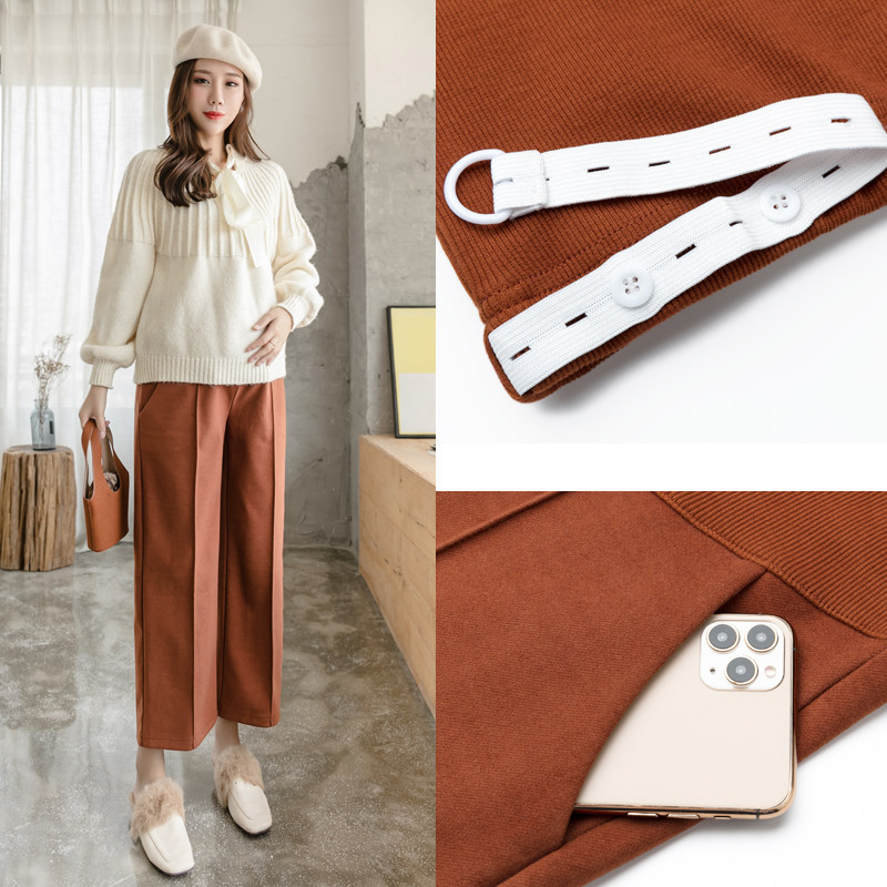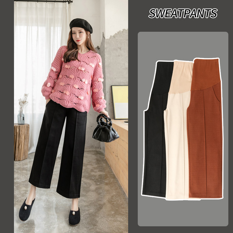 Pregnant women's autumn clothes, thickened belly nine-point wide-leg pants, autumn and winter fashion, loose high-quality woolen pants