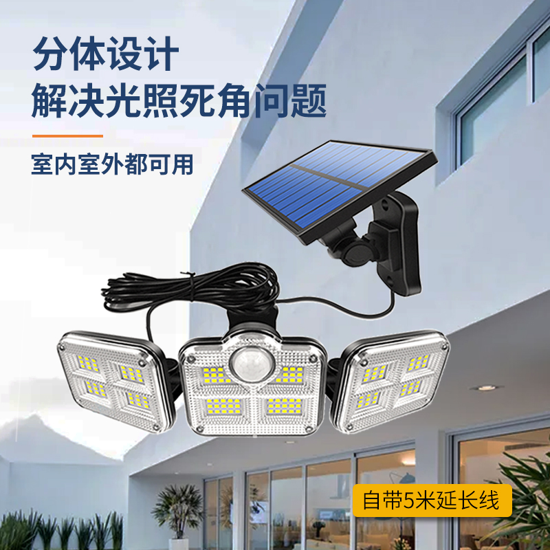 Solar outdoor light home garden villa three head wall lamp waterproof sensor light door head street light super bright lighting - Taobao