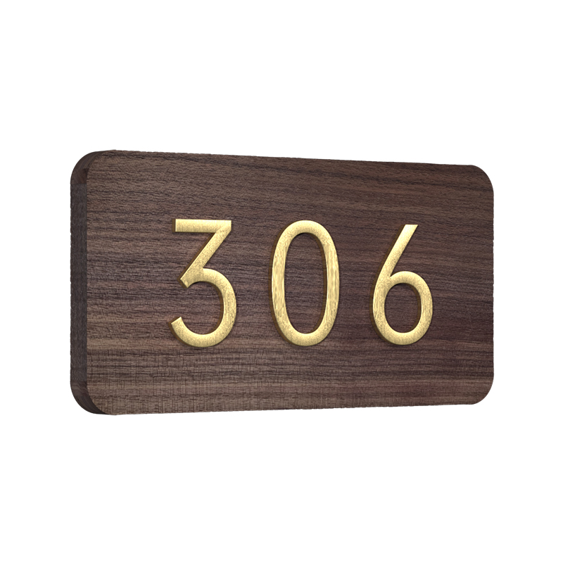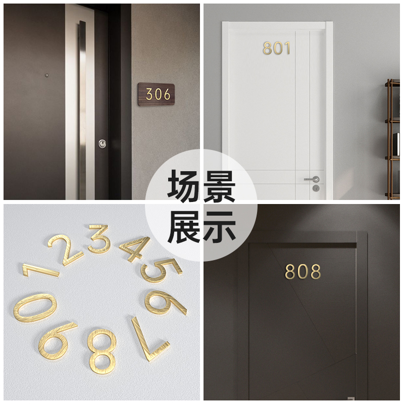 Creative brass digital house number custom room number plate hotel homestay modern fashion high-end villa KTV metal pure copper solid wood signboard home room rental room wall decoration listing