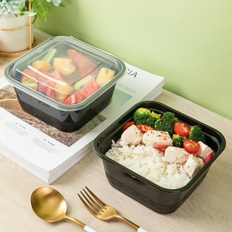 Xun Sheng American square disposable lunch box 1000ML outer packaging box business black plastic is a lunch box
