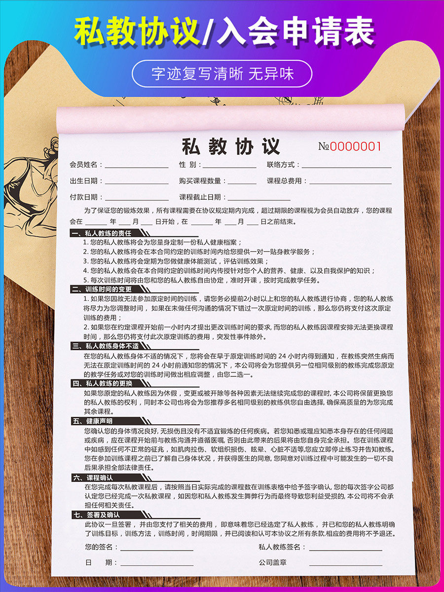 Gym Private Education Agreement Member Sign In to the Club Enrollment Body Assessment Registration Form Personal Trainer Weight Loss Course Receipt Swimming Receipt Yoga Enrollment Student Contract